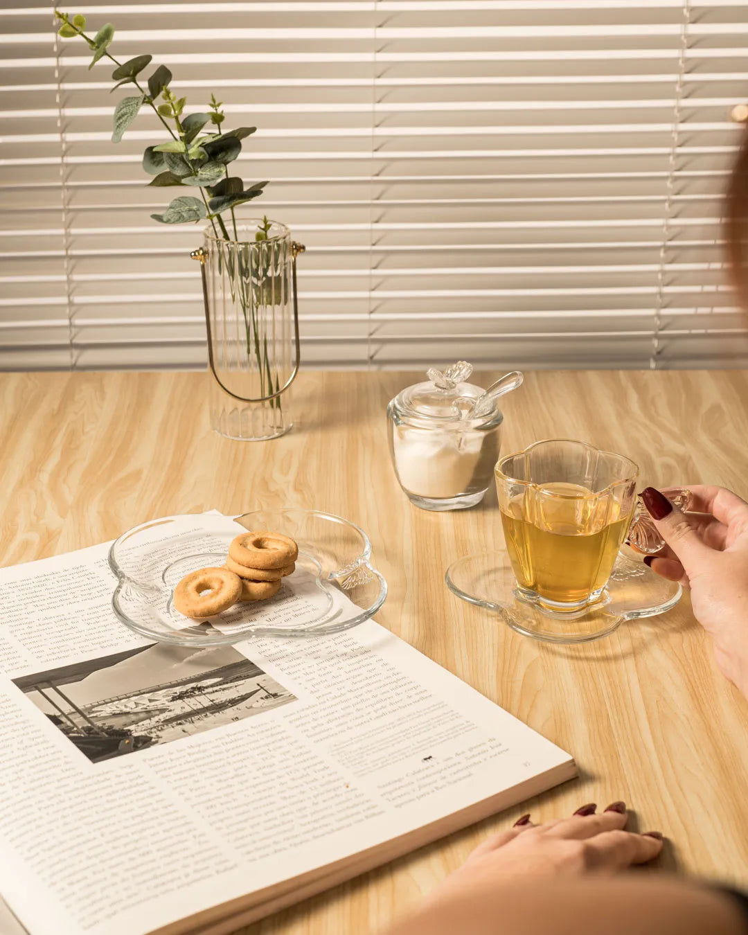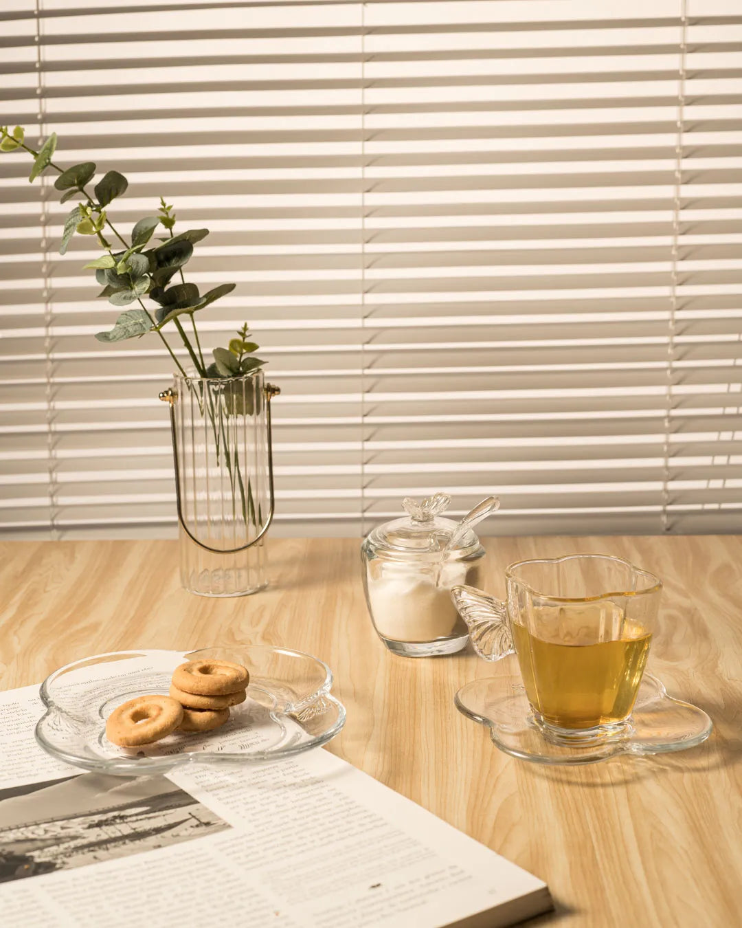 Um toque poético para a sua mesa. Com formato quadrado e detalhes delicados que remetem às asas de uma borboleta, este açucareiro combina beleza e praticidade. Feito em vidro transparente de alta qualidade, permite visualizar o conteúdo com elegância enquanto sua tampa garante frescor e proteção. Acompanhado de uma charmosa colher, ele torna o ato de servir ainda mais encantador.