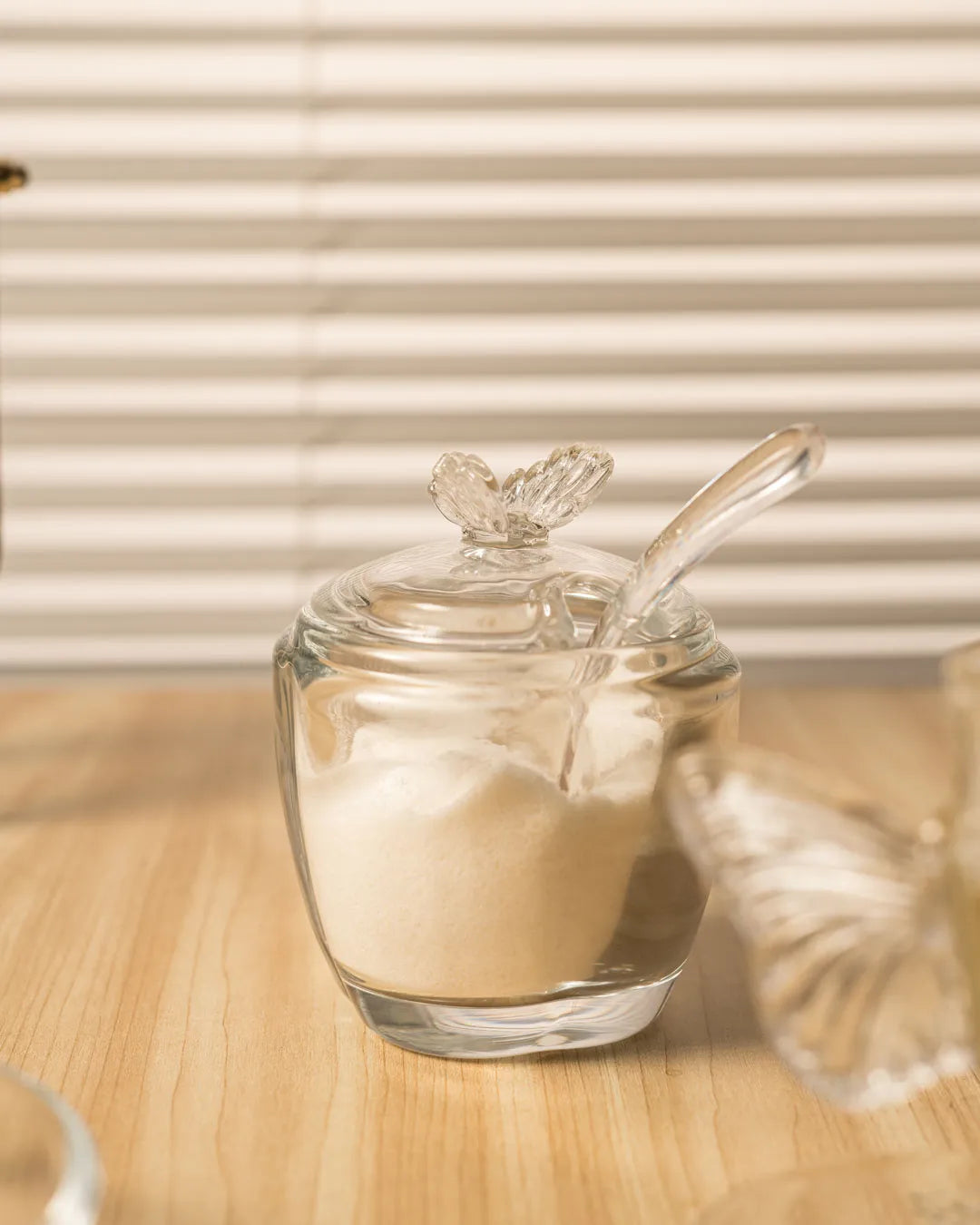 Açucareiro em Vidro com Colher — Design Borboleta
