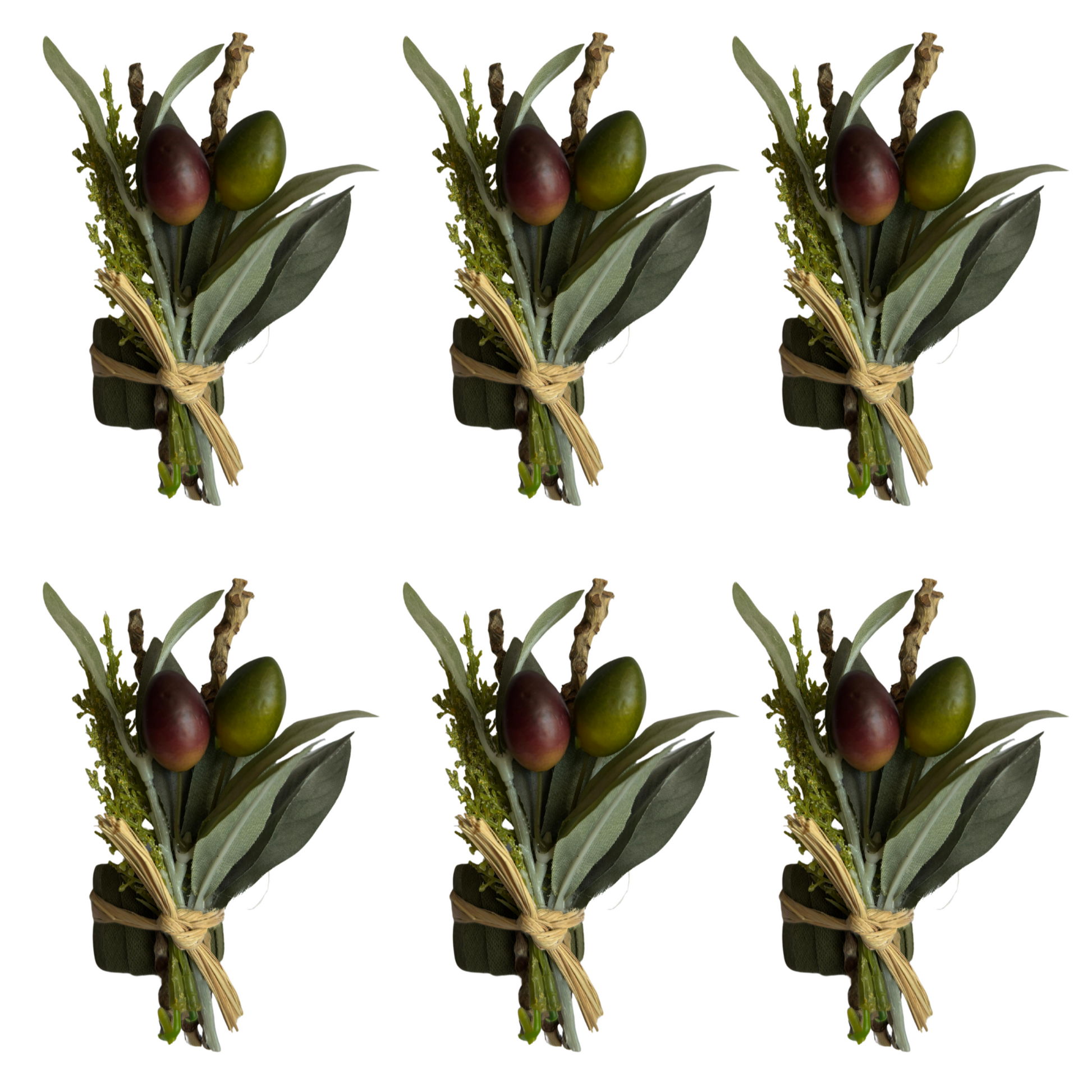 Leve o charme do Mediterrâneo à sua mesa posta! A Argola de Guardanapo Azeitonas é feita artesanalmente com uma combinação de PVC, tecido, ráfia, raminho seco e planta artificial, criando uma peça única e cheia de personalidade. Ideal para composições temáticas e momentos especiais.