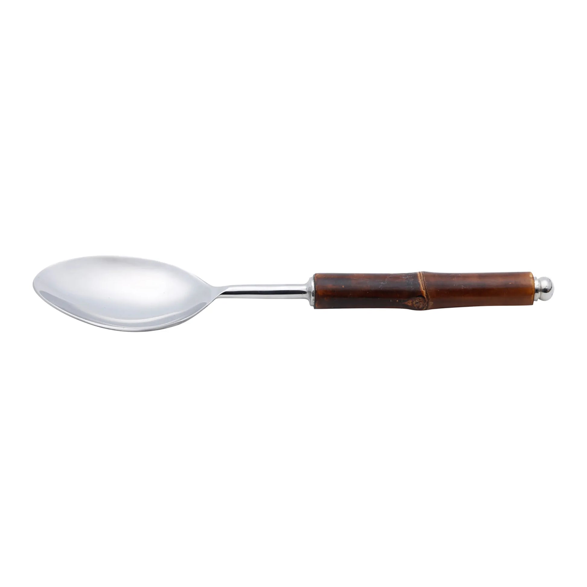 Para servir com charme e funcionalidade. Esta colher une a robustez do aço inoxidável à leveza natural do cabo de bambu, criando uma peça resistente e cheia de personalidade. Perfeita para realçar a apresentação das refeições, seja no dia a dia ou em ocasiões especiais.