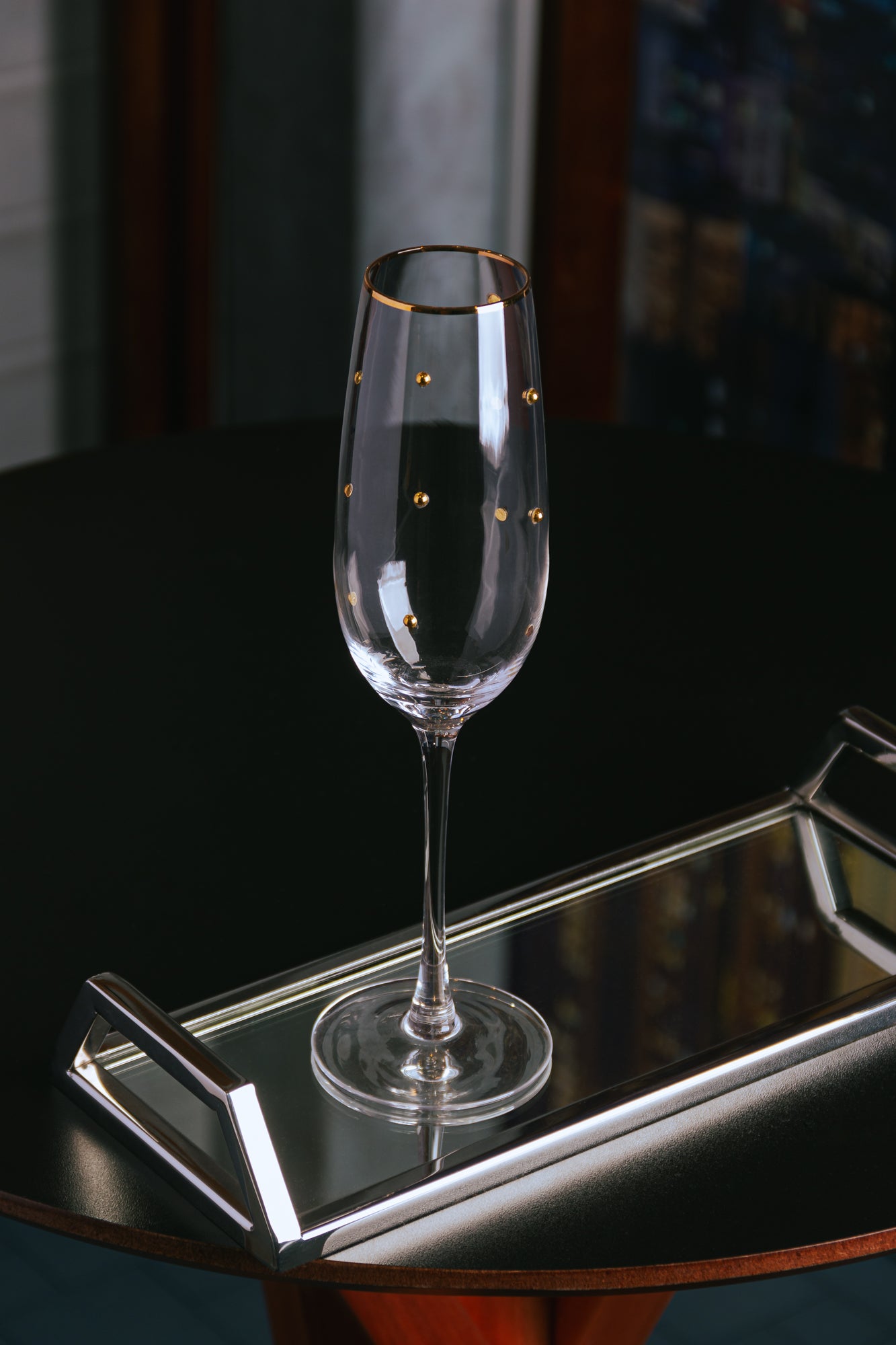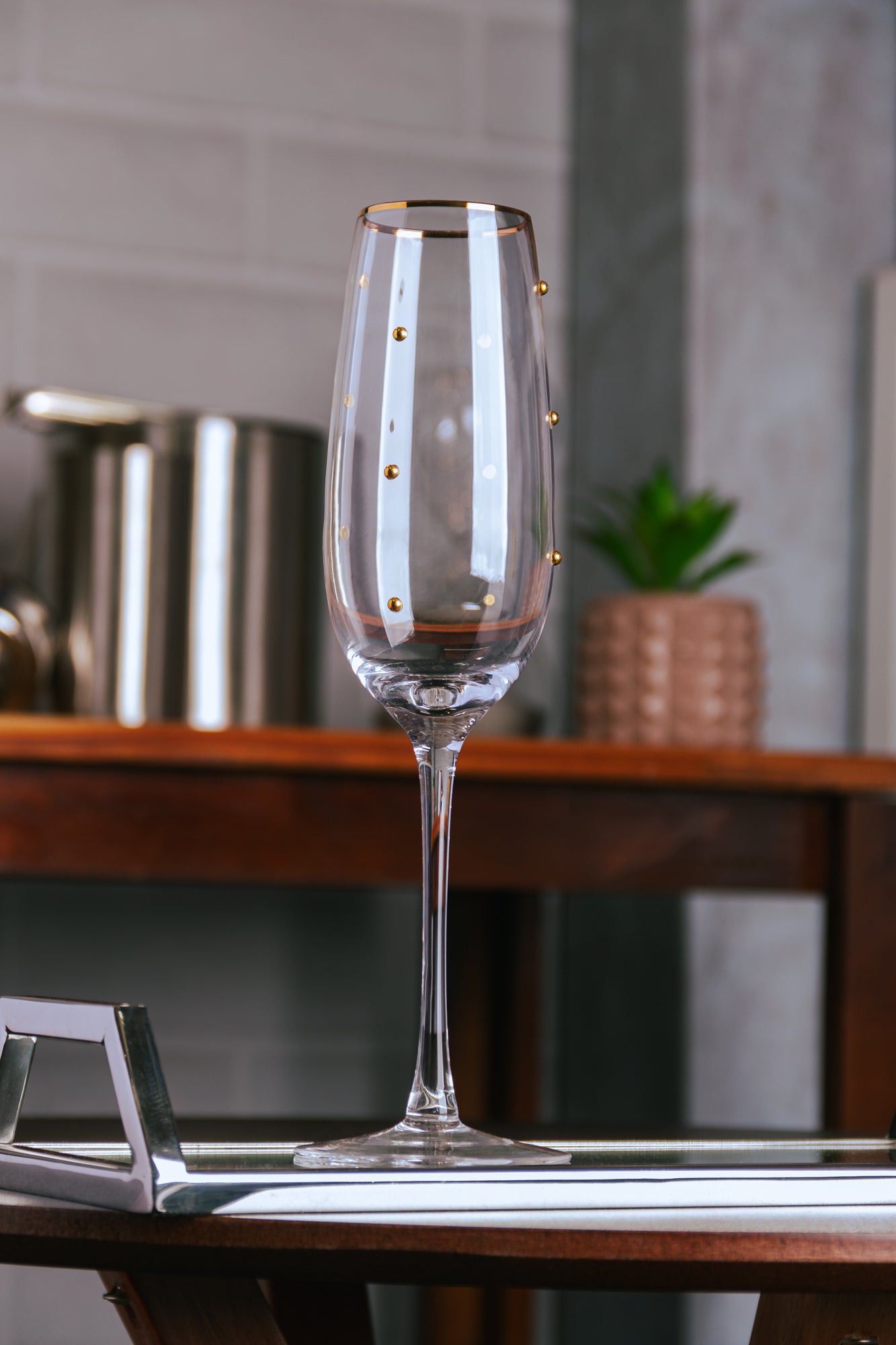 As Taças para Champagne Balls são adornadas com um elegante fio de ouro, destacando-se pela sua sofisticação e beleza única.