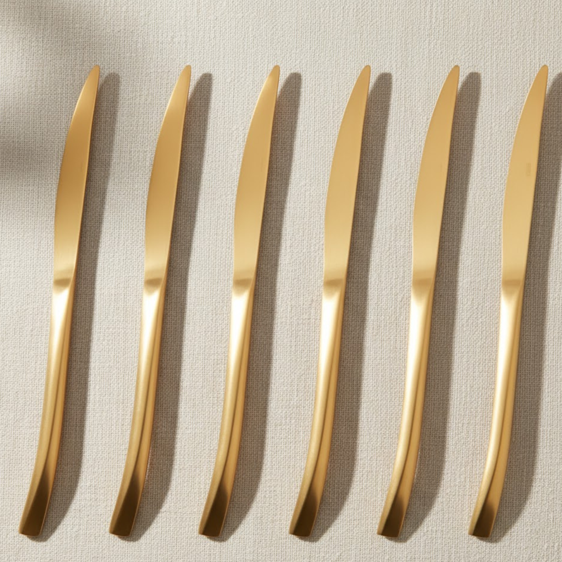 Conjunto 6 Facas de Sobremesa - Dourado Fosco - Berna