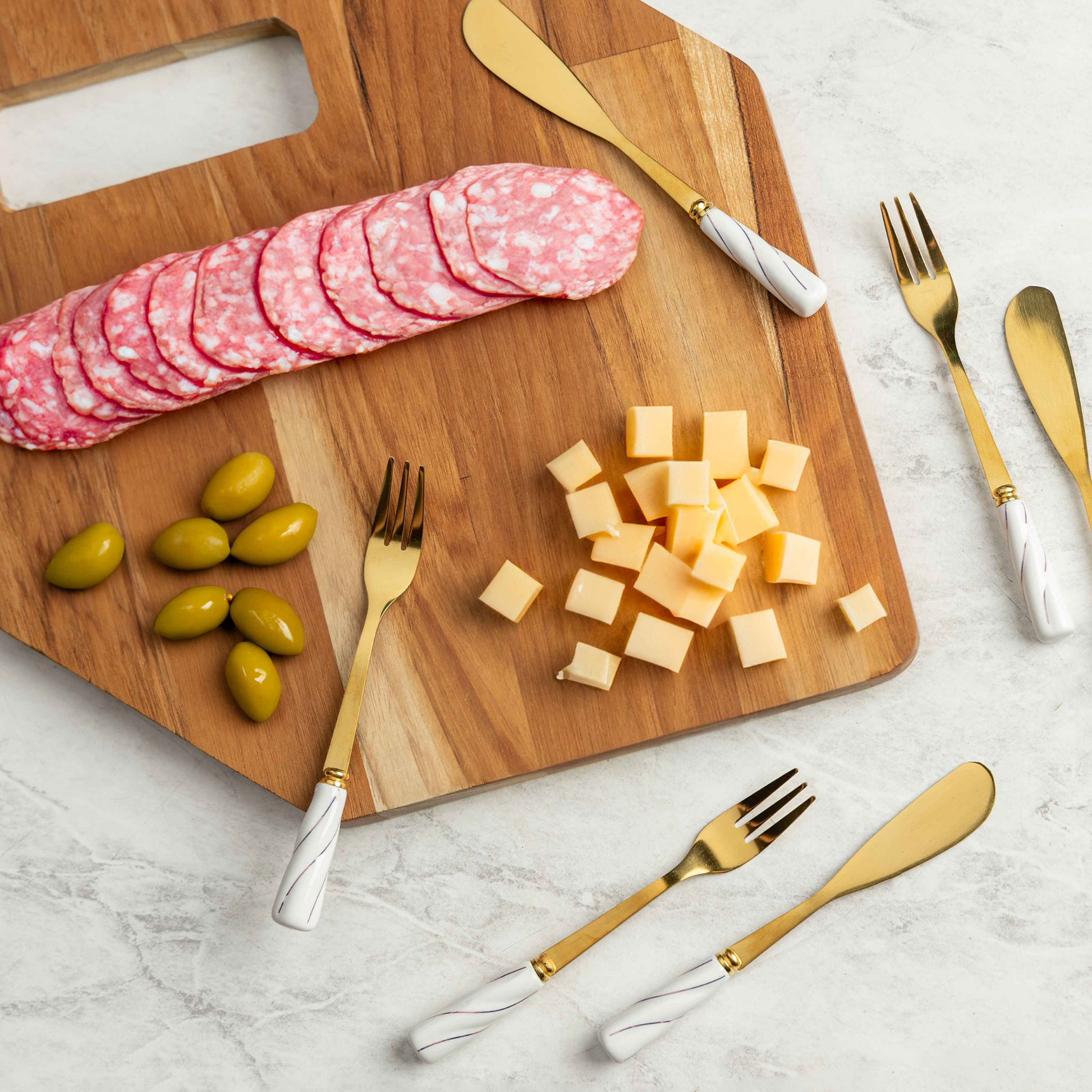 Conjunto com 4 Espátulas Douradas com Cabo em Cerâmica Branca