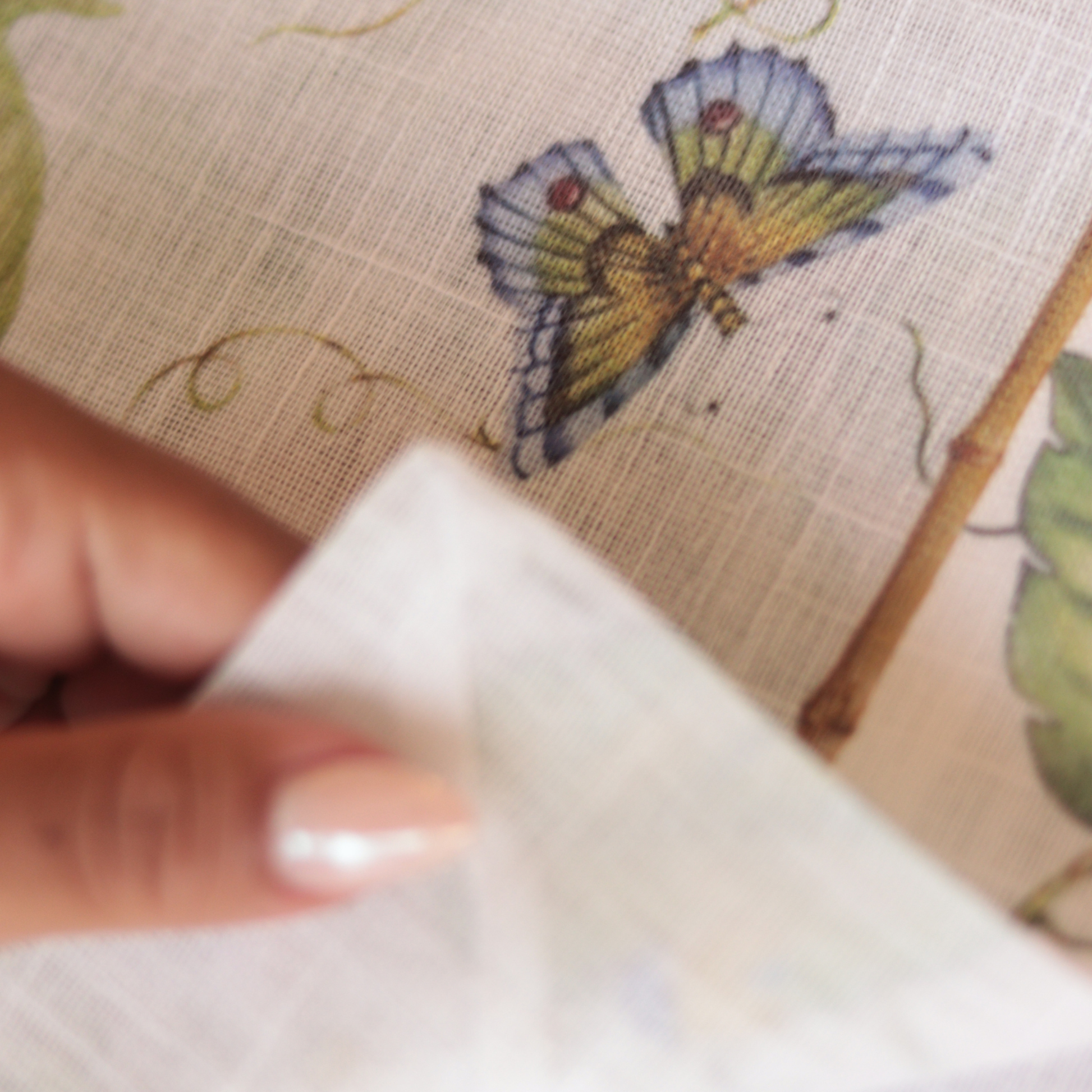 Cuidados: Lavar à mão. Não usar alvejante à base de cloro. Secar em temperatura mínima. Passar a até 150 °C. Não lavar a seco.