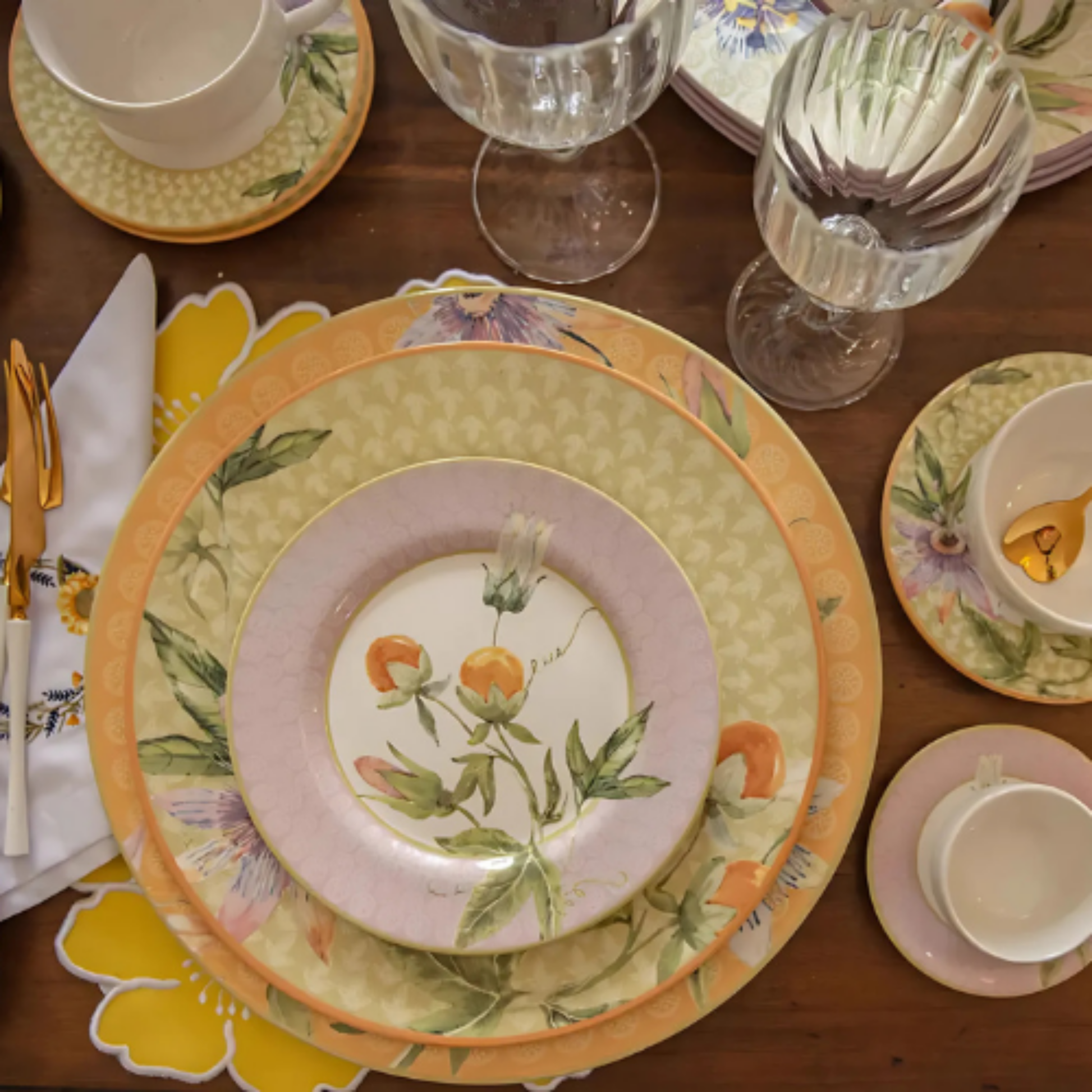 A Linha Passione foi criada para realçar os momentos especiais à mesa com beleza, suavidade e um toque de afeto. Produzidos em cerâmica de alta qualidade e com estampa encantadora, seus pratos unem o clássico ao contemporâneo em uma composição harmoniosa e acolhedora.