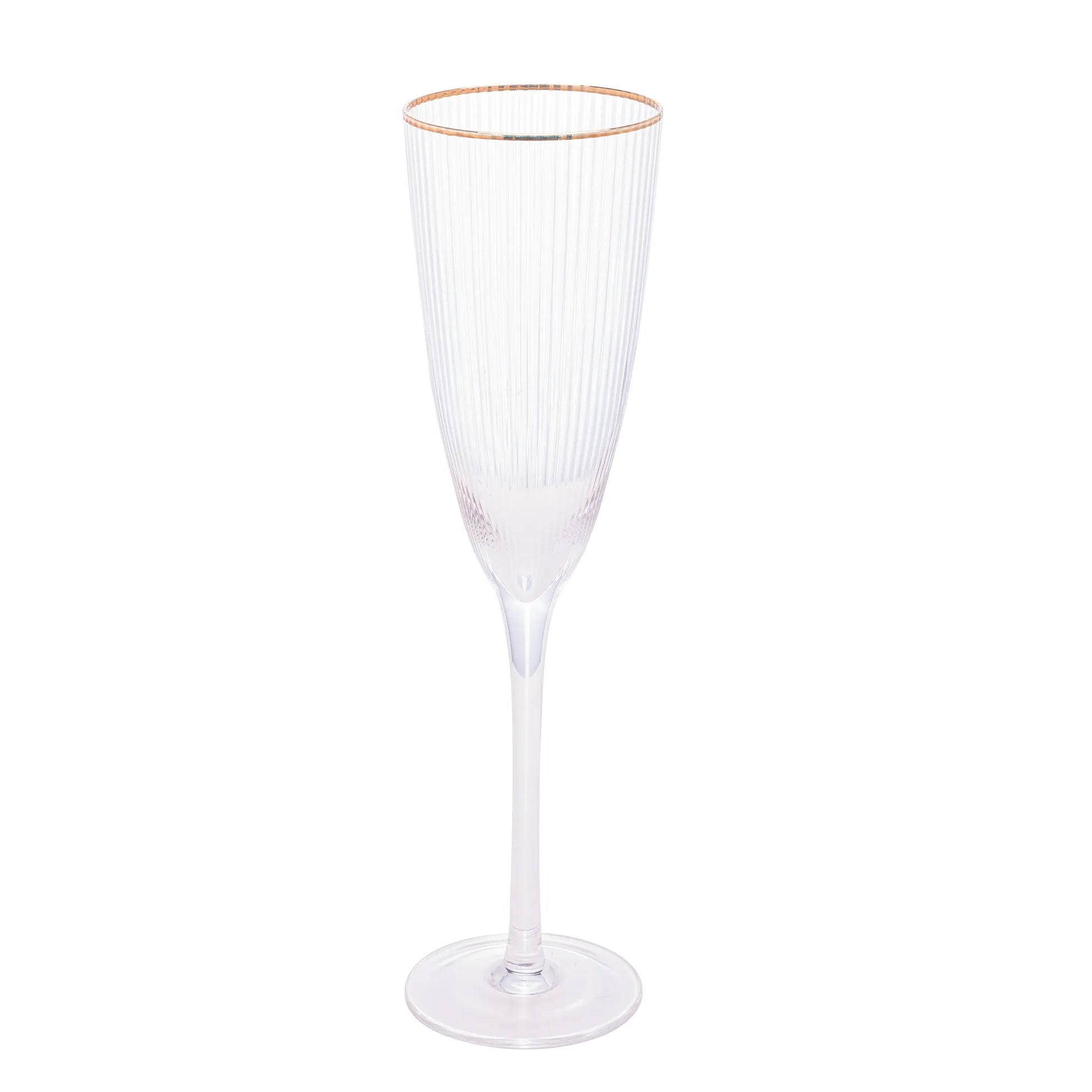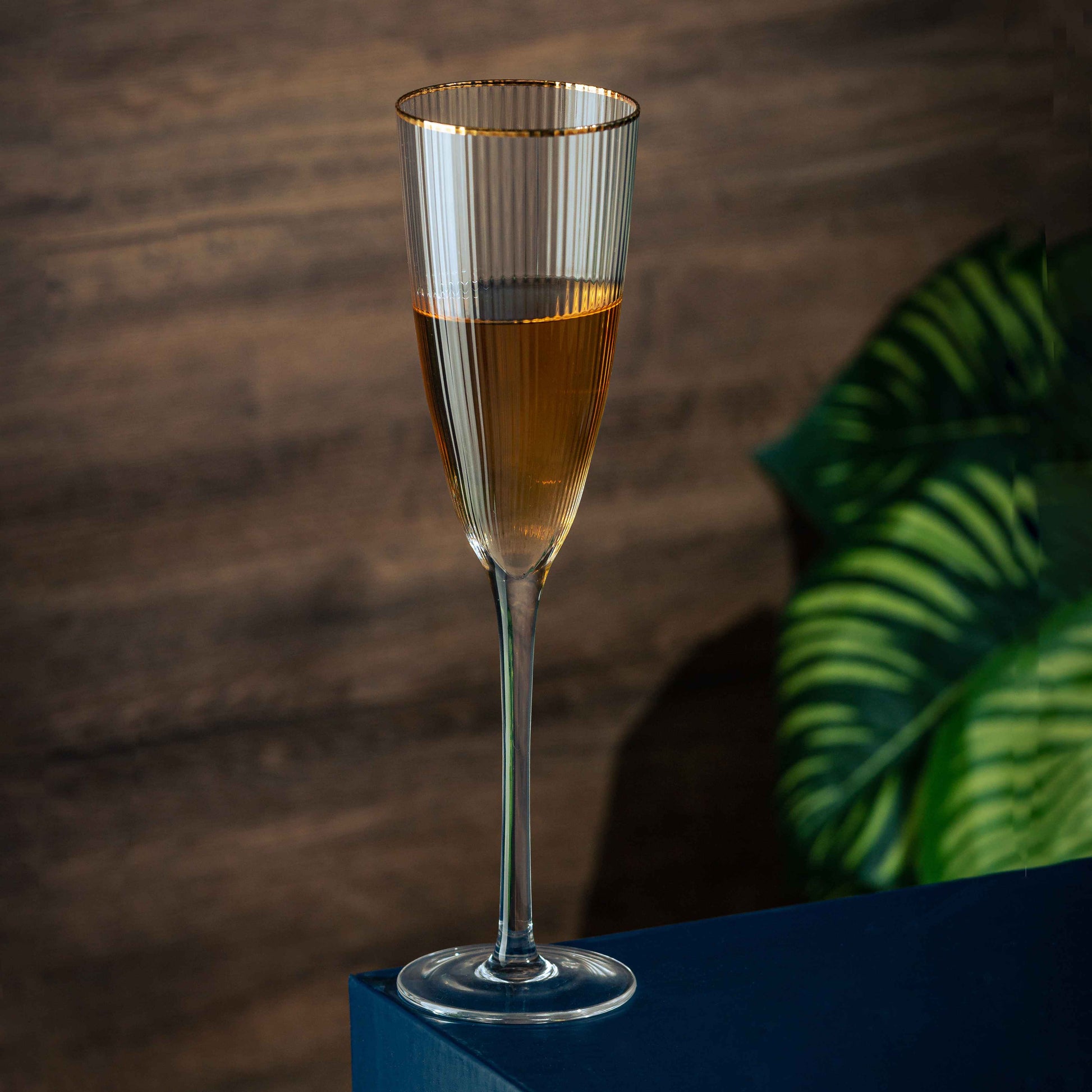 Conjunto com 2 Taças de Champanhe em Vidro com Borda Dourada — Lines (300 ml)