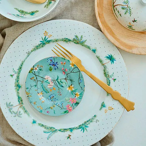 Deixe sua mesa mais charmosa com o prato petit four Jolie 💐💙 Procurando um toque especial para servir pequenas porções com elegância e alegria? O prato petit four da Coleção Jolie é a escolha ideal. Com um delicado fundo azul e flores coloridas em destaque, essa peça encanta e harmoniza perfeitamente com os demais itens da coleção.