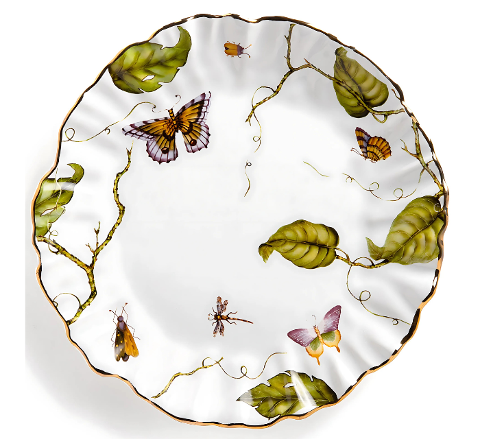 A Coleção Botanique é uma obra-prima em cada detalhe. Com estampa encantadora, bordas suavemente onduladas e delicados toques em ouro, essas peças são um convite para celebrar a natureza com sofisticação e beleza. Ideal para compor mesas marcantes, ela transforma qualquer ocasião em um momento especial.