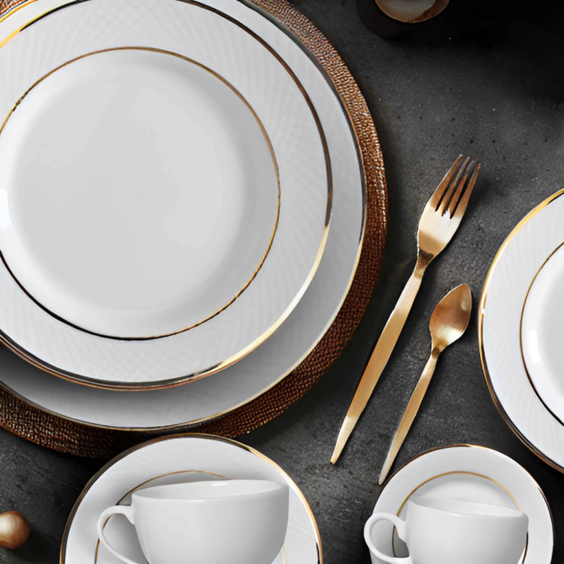 Prato de Sobremesa com Filete Dourado – Arte em cada detalhe, elegância em cada ocasião