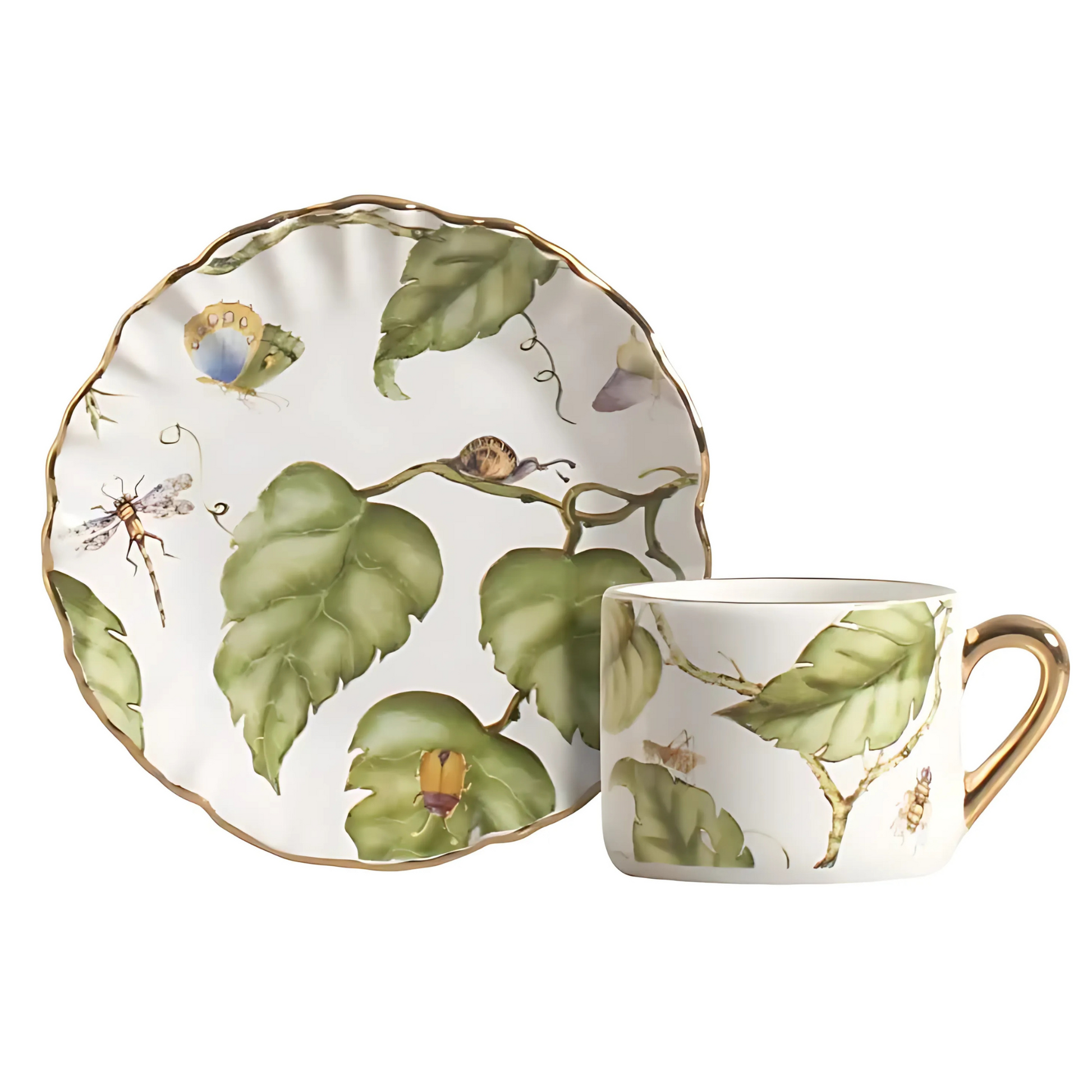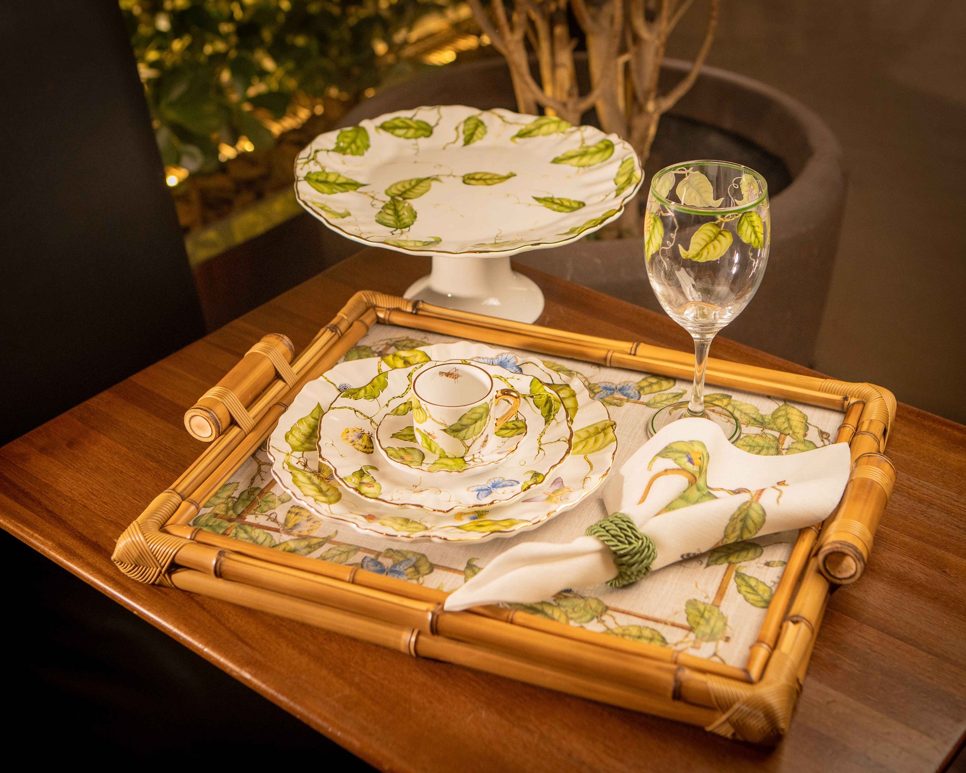 A Coleção Botanique é uma verdadeira obra-prima em forma de cerâmica. Com estampa encantadora inspirada na flora, bordas onduladas e detalhes em ouro, cada peça é uma celebração da beleza natural com um toque refinado de sofisticação.