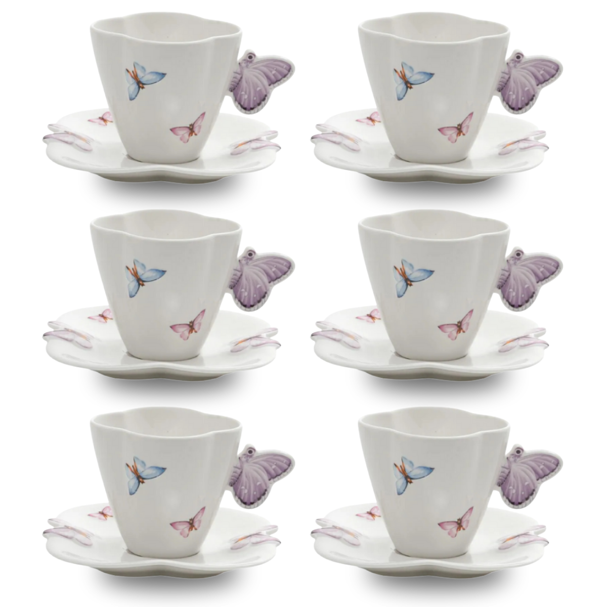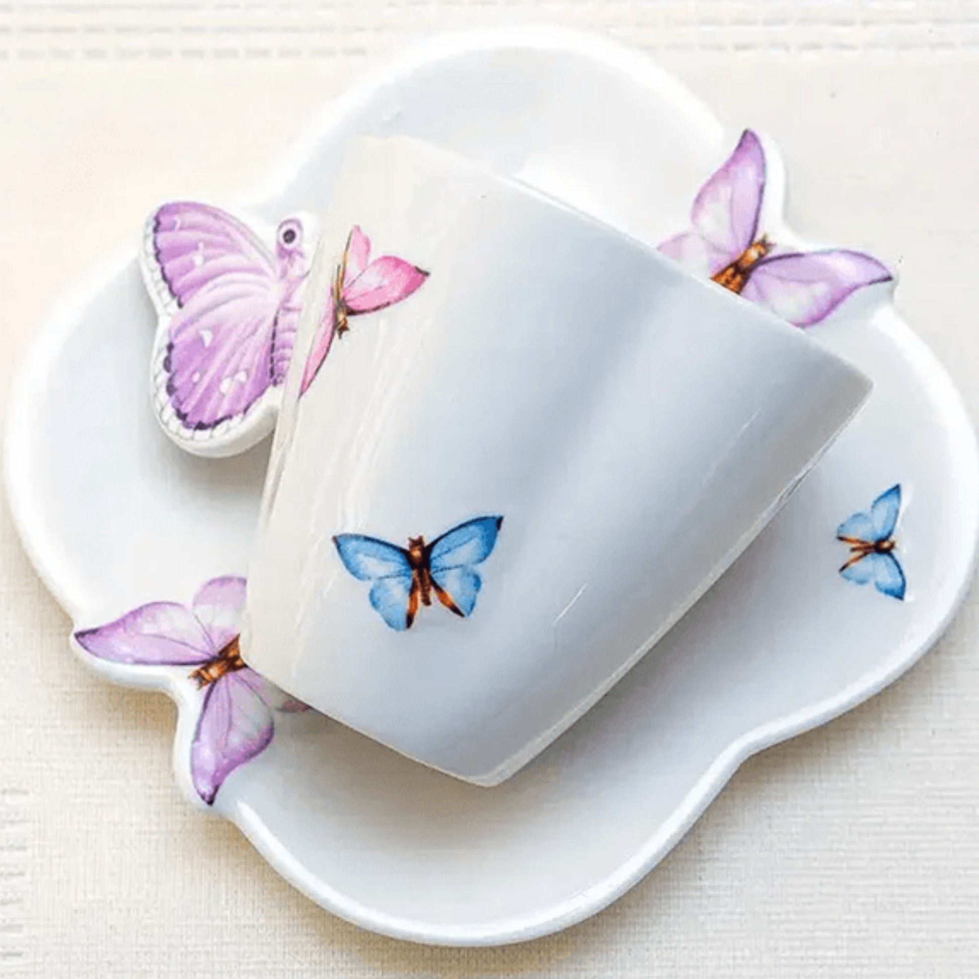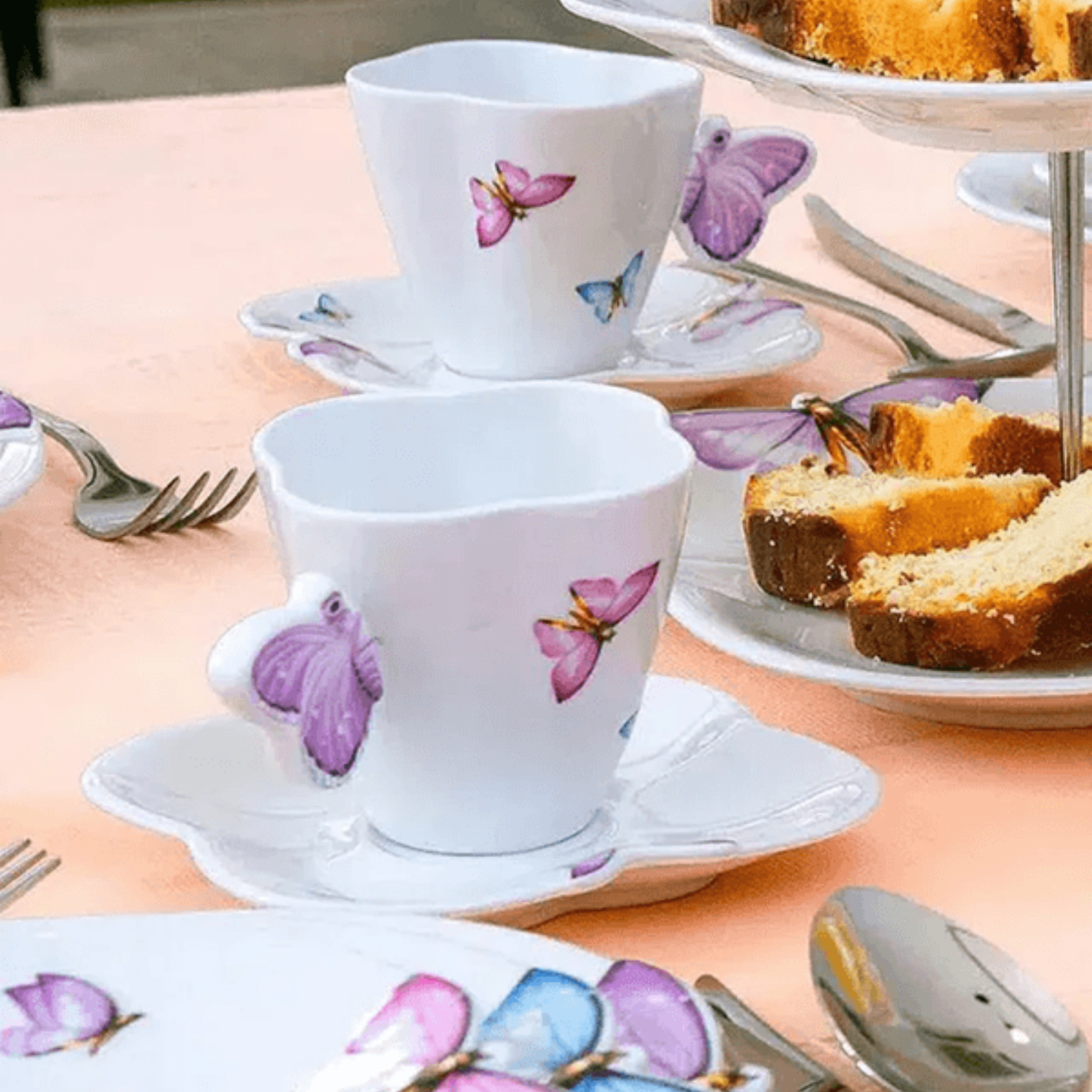A Xícara de Chá com Pires – Borboletas é uma celebração da delicadeza e da beleza natural. Com design atemporal e detalhes encantadores em forma de borboletas, esta peça transforma o simples ato de servir chá em uma experiência sensorial e elegante. Ideal para ocasiões especiais ou para trazer um toque de charme ao dia a dia.
